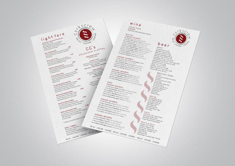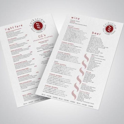 Menu Design – Corkscrew Charlotte